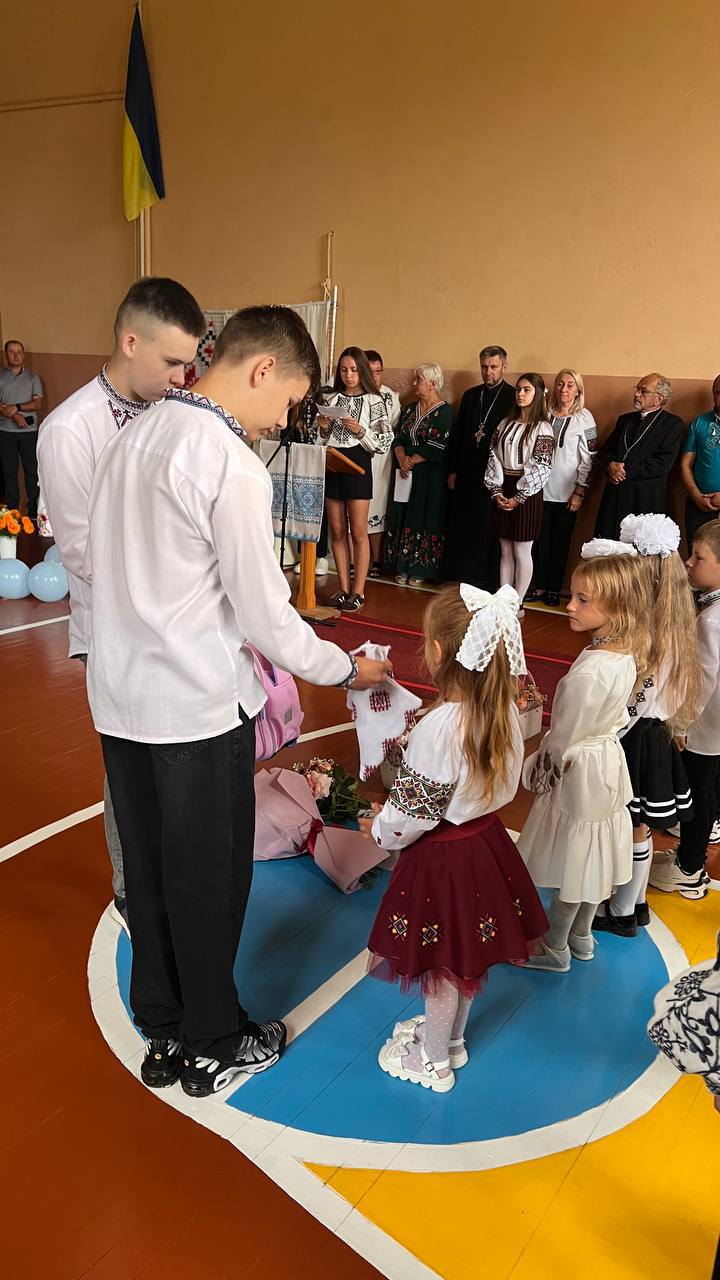 На святі Першого дзвоника зібралася велика гімназійна родина: учні, вчителі, батьки, представники влади, священники, випускники та наші мужні воїни, які нині перебувають у відпустці. Атмосфера була щирою, теплою й по-домашньому затишною.